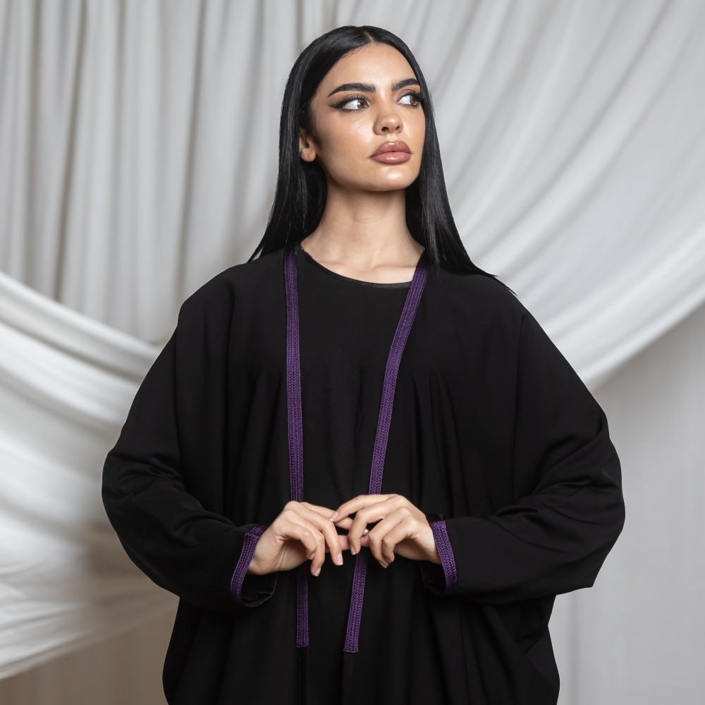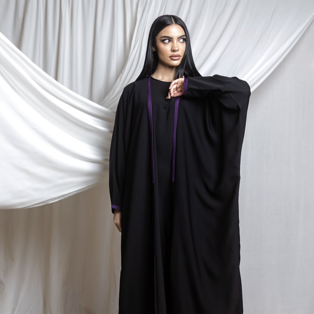 BLACK HALF BISHT CREPE ABAYA WITH THE STITCH OF YOUR CHOICE